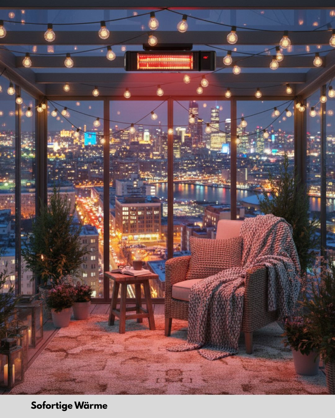 Ob beim langen Sommerabend auf der Terrasse, dem ersten Kaffee auf dem Balkon im Herbst oder entspannten Stunden im Wintergarten im tiefsten Winter – mit unserem Infrarotstrahler musst du nie wieder frieren. Einfach anschließen, einschalten und genießen.